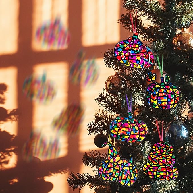 - Fall Pumpkin Suncatchers for Windows and Decorations:These pumpkin-shaped stained glass suncatchers craft for kids are designed with 9 intricate fall pumpkin patterns, making them ideal for decorating windows, bedrooms, or as personalized DIY ornaments. This kit is used for adding a magical stained glass effect that causes your home or classroom to look warm and lovely. A must-have for thanksgiving pumpkin craft kits, window art kits for kids, and meaningful DIY decorations