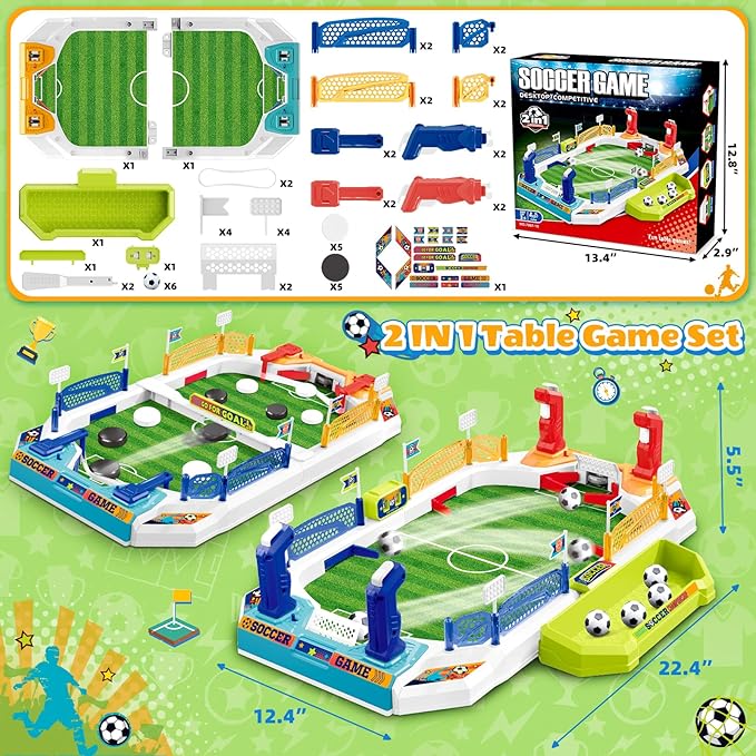 - 【Football Table Interactive Game】Foosball table game a real soccer family set which suitable for both family or party play. Toys for boys 5-7 is not only ideal for children to play alone but also perfect for parents to play with their children. Through soccer games for boys 6-8, parents can guide their children in learning soccer skills while enjoying precious parent-child time.