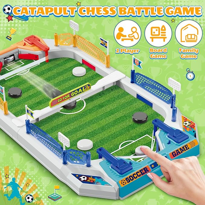 - 【2 IN 1 Football Toys】This boys toys 6-8 years old, Kids can fully enjoy either the football battle mode or the chess battle mode. In 2 In 1 mode, children will have a lot of happiness from this board game. This game toy set has many elements that simulate a real football field, scoreboards, goalposts, and so on. Children will enjoy the joy of the battle on this simulated football field.