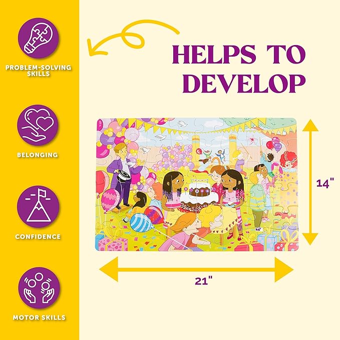 - BACKYARD BIRTHDAY PARTY FLOOR PUZZLE: Celebrate with the Upbounders Birthday Balloons 48-piece floor puzzle for kids, featuring a colorful backyard birthday scene with diverse characters. Perfect jigsaw puzzle for kids who love birthdays and fun parties.