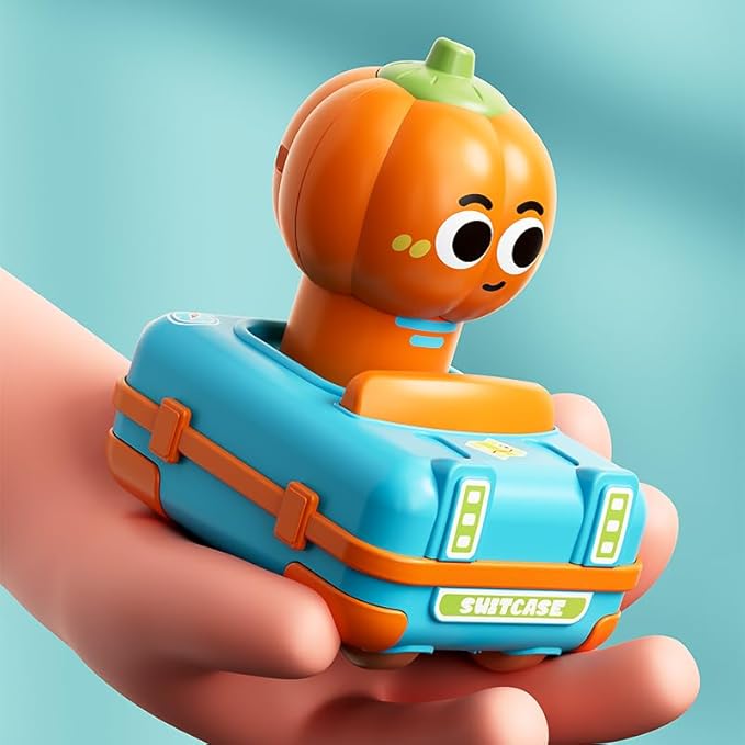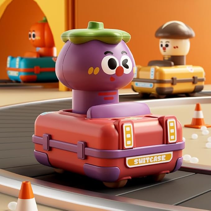 - Simple Play, Endless Fun - Press and Go. Just press down and watch the cars zoom forward! No batteries required. Cartoon vegetable and fruit-shaped vehicles add extra fun and keep young children engaged.