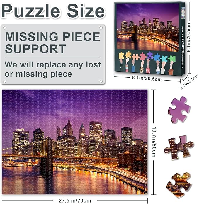 1000 Piece Puzzle for Adults New York City - Jigsaw Puzzles 1000 Pieces, Hard Difficult Challenging Puzzle Brooklyn Bridge Nightscape (27.5"x19.7"), Family Game Night Gift & Home Decor