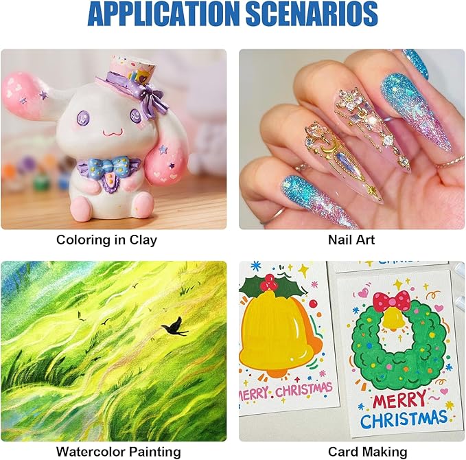 - 【Smooth Strokes, No Powder Off】Our watercolors paint set are extremely durability. Glitter watercolor remain highly stable, drying without crumbling or fading, making the watercolor painting shine forever. The fine powder texture makes the strokes of the pearl paint smooth and resists clumping