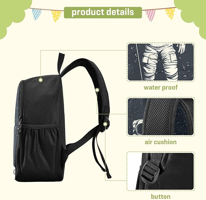 Astronaut Moon Flag Toddler Backpack for Boys Girls 3-6 Small Travel Backpacks for Kids Preschool Bookbag for Elementary Kindergarten for Travel School