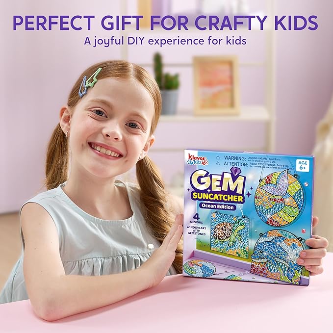 - Complete Crafting Experience: Our craft kits for kids includes everything needed for an immediate start. With 4 pre-printed window designs, 4 color guides, over 1300 gemstone stickers in 13 colors, 4 ropes, and 4 suction cups, your child can dive into the world of sparkling window art immediately