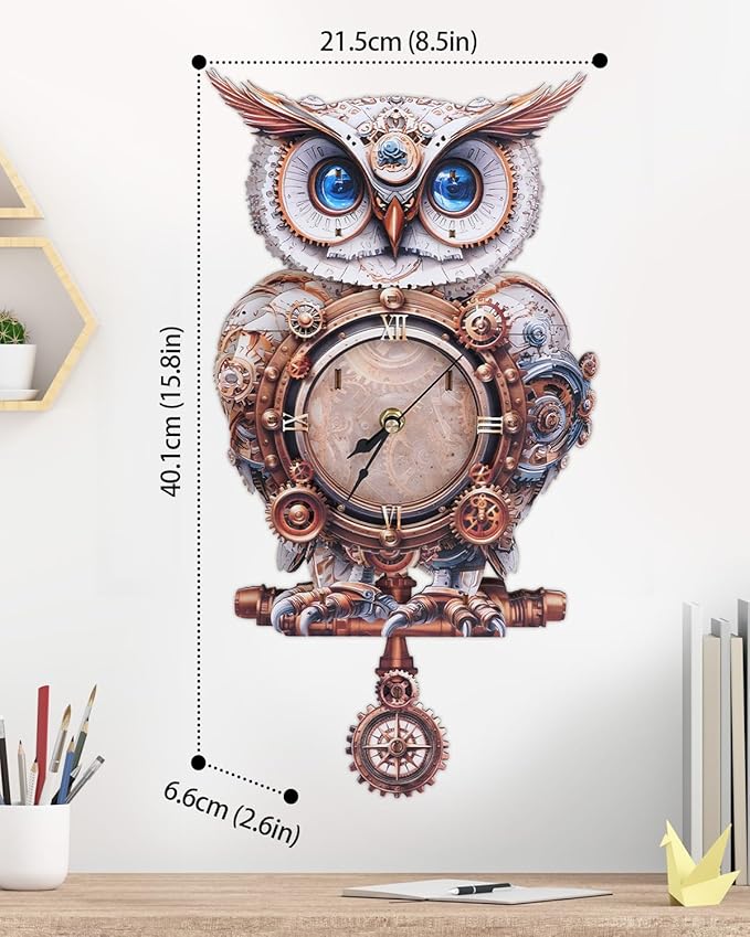 - 【Mechanical Owl Theme】:The three-dimensional owl pattern and Roman numeral dials combine mystery, charm and whimsy. Realistic details and removable pendulum and hour hand make it unique, suitable for Owl lovers and adults who like fun puzzles, also a unique home decoration
