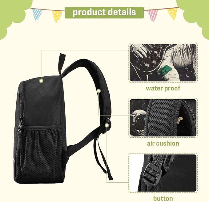 Guitar Astronaut Toddler Backpack for Boys Girls 3-6 Bookbag for Preschool Small Kindergarten Elementary Backpackss for Kids for Travel