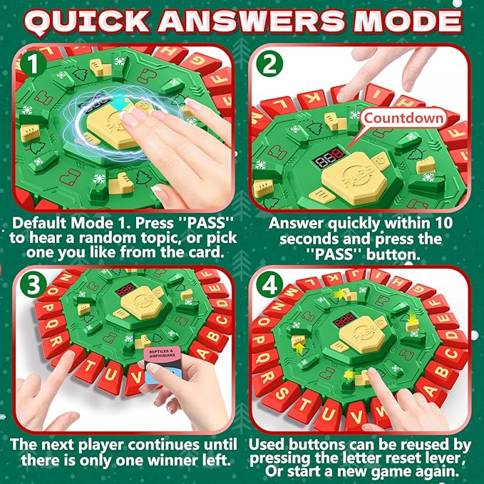 - Great for All Occasions: The letter game can help people get to know each other in a relaxed and engaging way during activities such as parties, travel, and family game night. 2 or more people, 15-20 minutes, need two AA batteries (NOT INCLUDED)