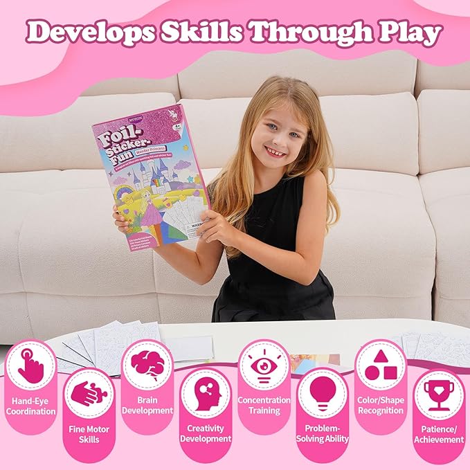 - Durable & Safe – The MyPixie Foil Art Kit comes with extra clear protective stickers to keep the colorful foil stickers from fading or wearing off, preserving your child’s precious creations. Designed to spark imagination and encourage creativity, this kit ensures every masterpiece stays bright and beautiful for longer.