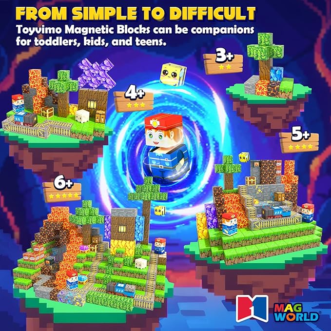 - POWERFUL MAGNETISM, EASY TO BUILD: Toyvimo magnetic blocks have powerful magnetism. Blocks don’t fall apart easily. Kids can build any shapes, simple or complex, as they like. Magnetic tiles are certified by CPSIA and ASTM, made of high-quality ABS material, with smooth and rounded edges to protect kids' curious hands, and the sealing technology ensures that the magnets will not fall out easily. It is recommended for boys & girls ages 3+