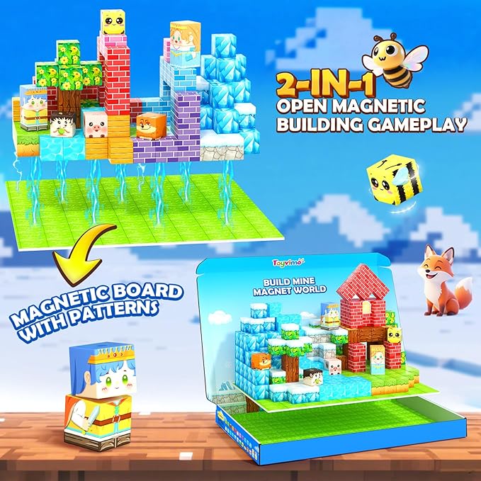 - STEM LEARNING TOYS: Master magnetism, structural engineering, and spatial logic as kids build, break down, and rebuild sandbox-inspired forests—just like in the game! The hands-on process turns STEM concepts into playful discoveries, while Montessori-style open play sparks imagination. Parents notice 40% longer focus during play, as kids get lost in creating their magnet worlds