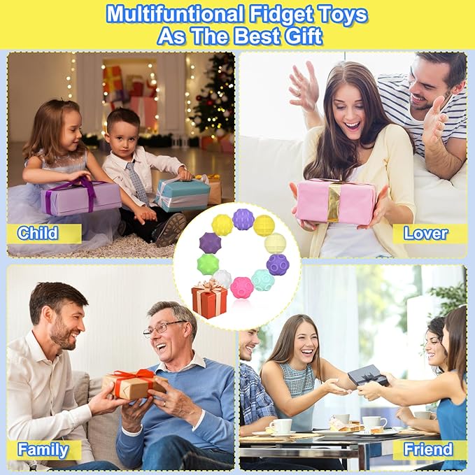 - 2️⃣Novelty Toys, As a Perfect Gift Idea: Getting these sensory balls, we can concentrate our children's attention, bring more fun, and release anxiety fidgets for adults and kids. So, our fidget toy is the best choice for a premium present. Suitable for kids and adults, they are an excellent prop to improve any atmosphere, allowing your kid to be the group's new star.