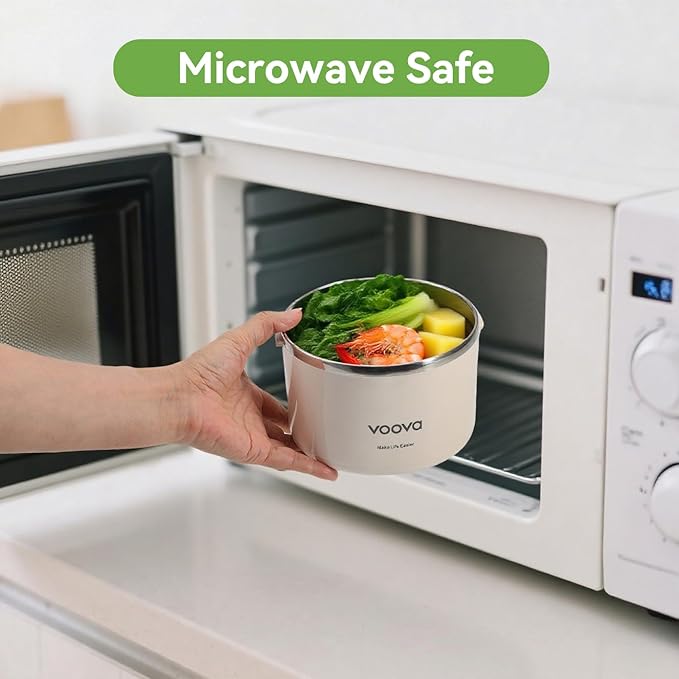 - Easy to Care & Microwave Safe: The stainless steel bento box features with wide mouthed food containers, polished and smooth interior, making it very easy to clean. In order to use the beige lunch box for a long time, please dry out to store it after each cleaning. Dishwasher and refrigerator safe. The stackable lunch container can safely reheat food in a microwave oven, within a microwave-safe range (≤212°F, ≤3 minutes). Note:When Placing Bento Box in the Microwave, Remove the Sealed Lid or Open the Vent Plug.