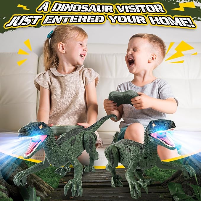 - Lifelike Appearance and Realistic Movement:This velociraptor dinosaur toy is designed with detailed textures, 3D eyes, and a natural walking posture, bringing dinosaurs from the Jurassic era back to life. The smooth movement and vivid details immerse children in a world of prehistoric adventure