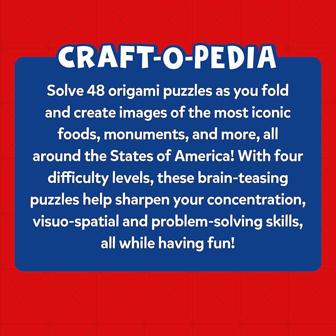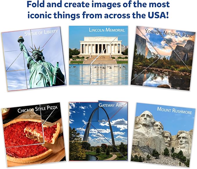 - ORIGAMI FOLDING PUZZLES: Get ready to fold and create images of the most iconic foods, monuments, and more from across the USA. Solve 48 origami puzzles across four levels of difficulty and enjoy the fun of hands-on play.