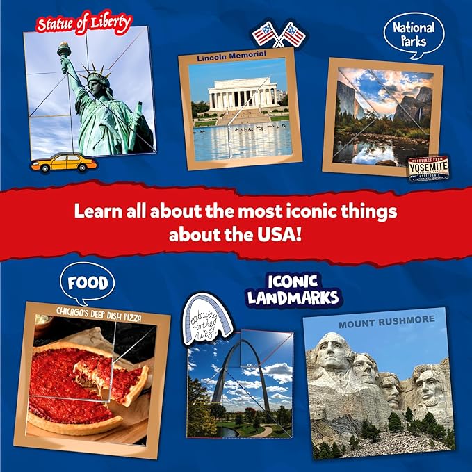 - SCRAPBOOKING KIT WITH ORIGAMI PUZZLES, STICKERS & FACTS: Create your own encyclopedia scrapbook and learn the most iconic things about the USA! Solve and match 48 origami puzzles, place them in their pockets, decorate with fun stickers, and read fascinating facts!