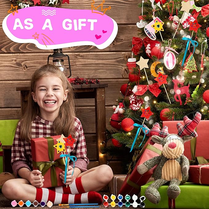 - 【Widely Use】: The wooden princess wand kits are great gift for the child who likes crafts. This is a good preschool learning activities. It can also be given to children as a gift for birthdays, Christmas and other festive occasions to enjoy meaningful time together. We hope it can bring joy to more people and promote their learning of art and crafts