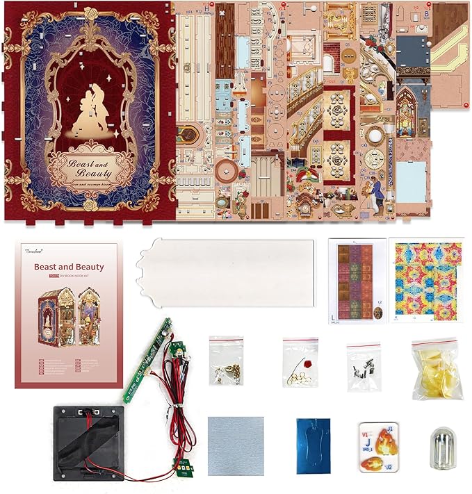 - Beast and Beauty Book Nook Kit: The kind and brave maiden breaks the spell of confinement for the prince who has turned into a beast, and they dance to the music in front of the rose window of the old castle. Lovely magical friends also came to celebrate them.