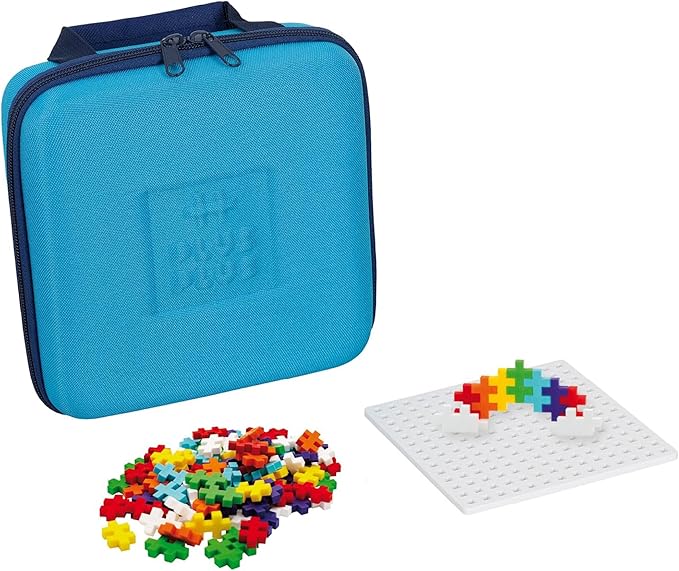 PLUS PLUS Building Set with Travel Case, 3D Open Ended Stem Toy for Kids, 100 Mini Interlocking Pieces, 1 Baseplate - Rainbow Mix