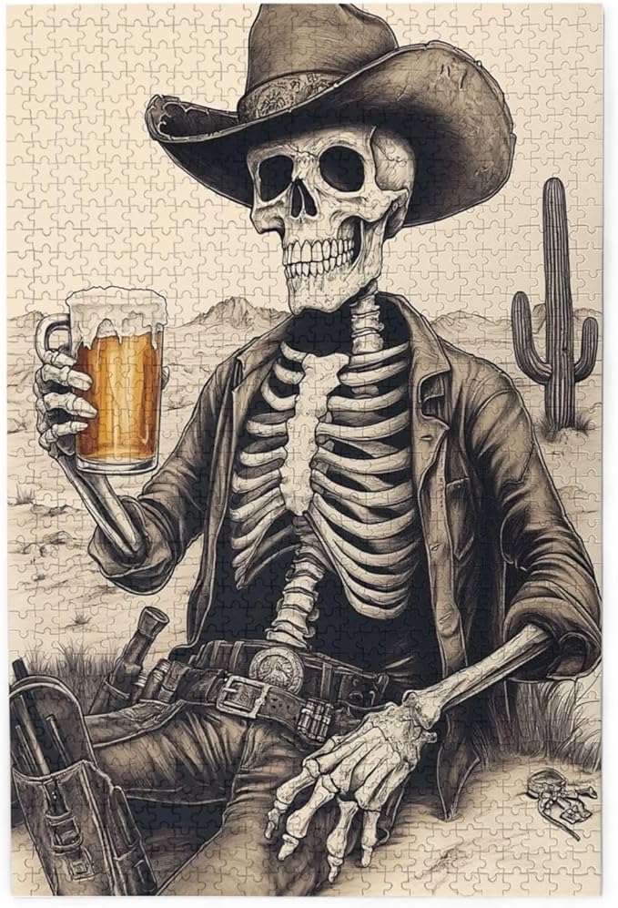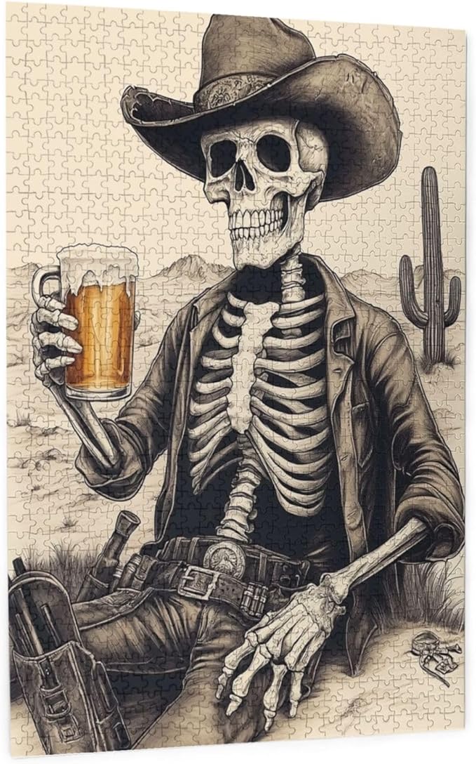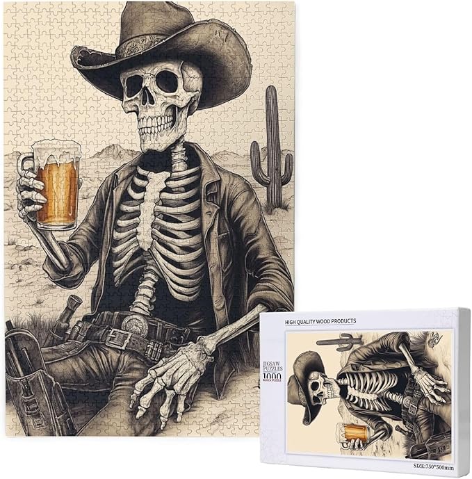 The Skeletons in The Desert Drink Alcohol,1000 Piece Wooden Puzzle for Adults,Unique Artwork for Adults,Brain Training Challenge,Stress Relief Activity,Eco-Friendly Woodens Pieces