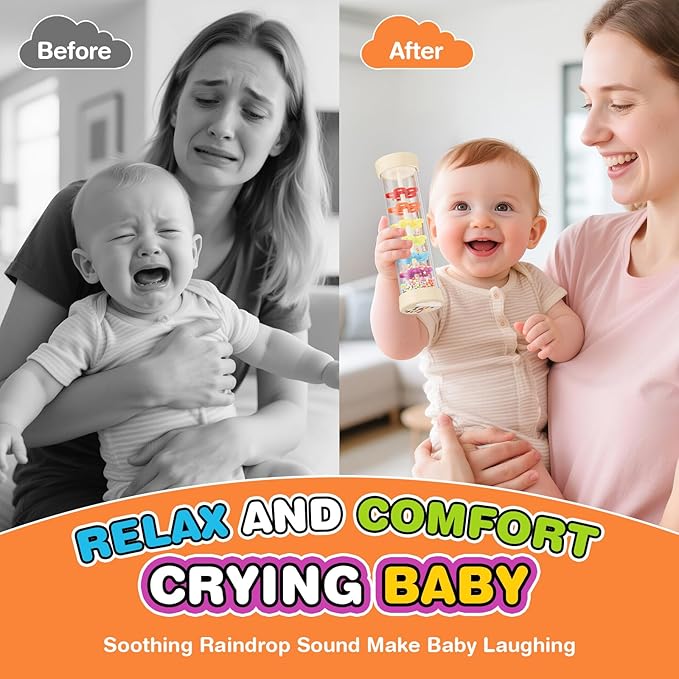 - Safe Design Baby Toy:Produced from sturdy and safe materials,designed with rounded edges and solid structure,child-safe paint finish, this rainmaker baby toy is non-toxic and conforms to strict CPSC testing standards,safe for baby to play and enjoy fun