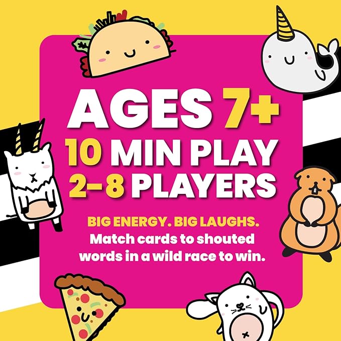 - Fast-Paced Fun for All Ages: Engage in a "big" game where players race to match cards with spoken words like "Taco," "Cat," "Goat," "Cheese," and "Pizza." Designed for 2–8 players aged 8 and up, each round lasts just 10–15 minutes, making it perfect for quick family card games or travel entertainment. Its simplicity and speed ensure everyone stays engaged and laughing.