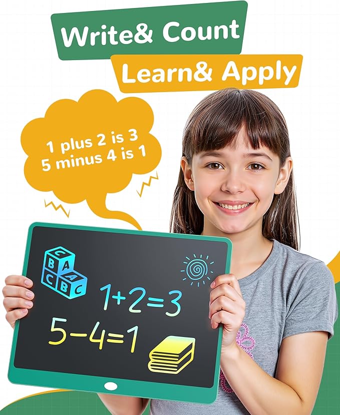 KOKODI LCD Writing Tablet, 16 Inch Colorful Toddler Doodle Board Drawing Tablet, Erasable Reusable Electronic Drawing Pads, Educational and Learning Toy for 3-6 Years Old Boy and Girls(Green)