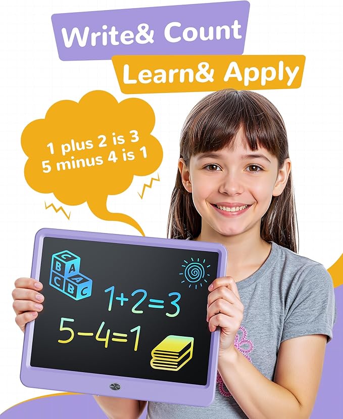 KOKODI LCD Writing Tablet, 12 Inch Colorful Toddler Doodle Board Drawing Tablet, Erasable Reusable Electronic Drawing Pads, Educational and Learning Toy for 3-6 Years Old Boy and Girls(Purple)