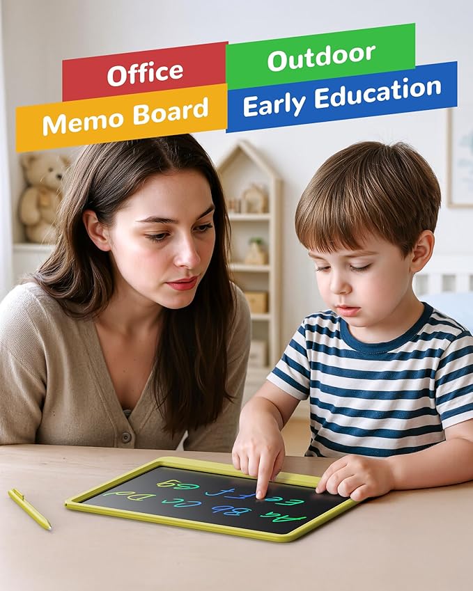 KOKODI LCD Writing Tablet, 12 Inch Colorful Toddler Doodle Board Drawing Tablet, Erasable Reusable Electronic Drawing Pads, Educational and Learning Toy for 3-6 Years Old Boy and Girls(Yellow)