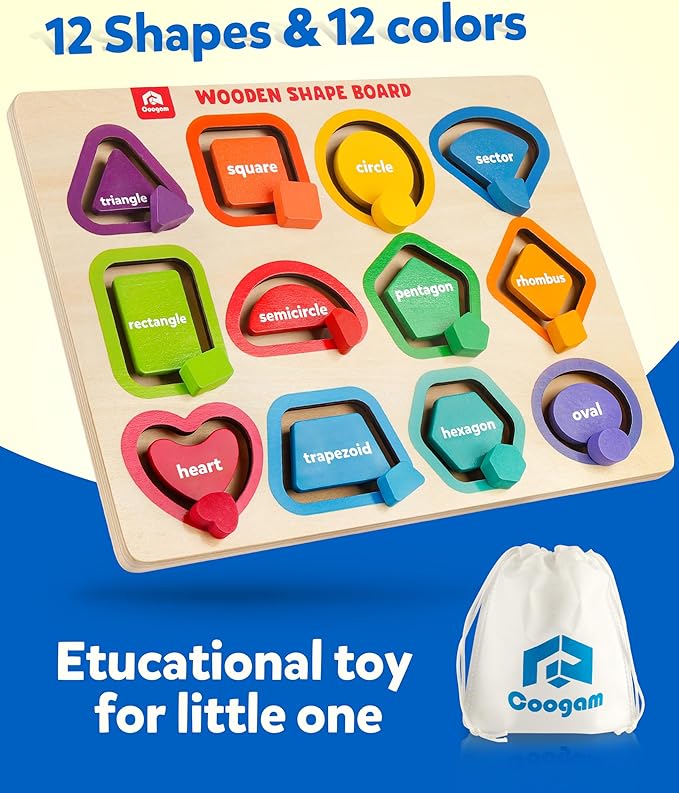 - Movable Wooden Stacking Peg Board Puzzles: Coogam shape-sorting puzzle toy is made of natural wood, the surface of the Montessori peg puzzle is smooth the corners are rounded for safety play. Cute and bright colors stimulate children's interest and contribute to sensory stimulation and brain development