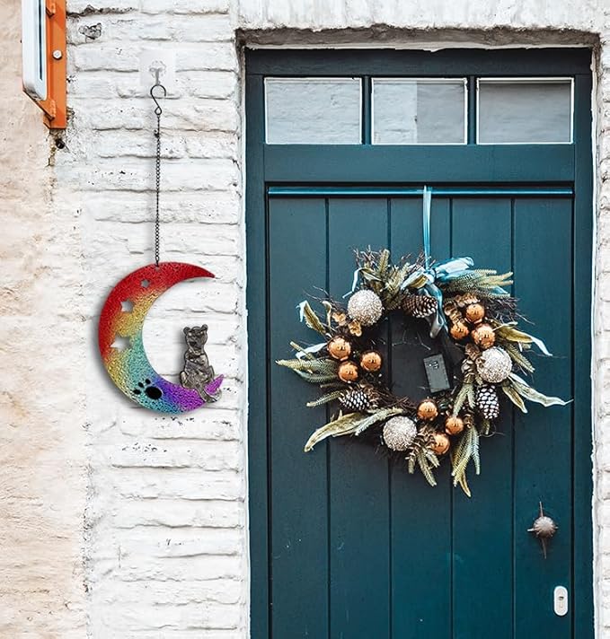 Stained Glass Window Hanging - Colorful Gradient Moon Suncatcher for Door Terrace Garden Home Decor Black Kitten Sun Catcher Birthday Gifts for Lovers Women Men Dad Mom Nana 6.3 in