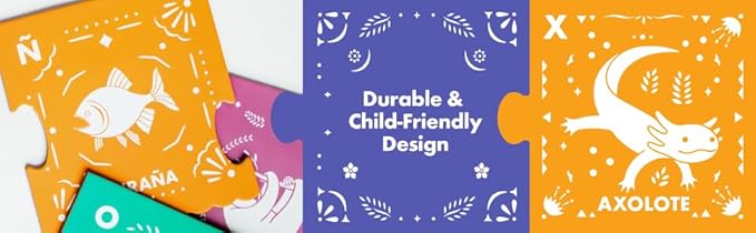 - Help your little ones ages 3 and up learn their ABCs in Spanish as they piece together this 27-piece floor puzzle with a unique papel picado design!