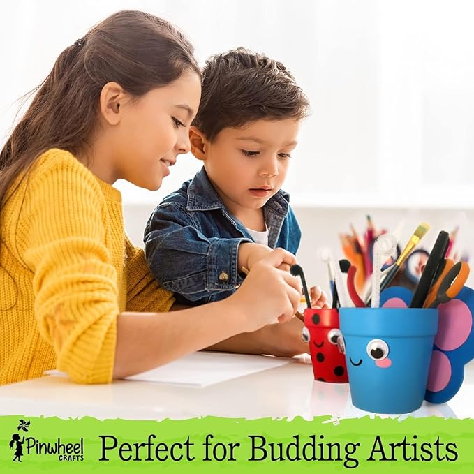 Pinwheel Crafts Flower Pot Painting Kit – Paint Your Own Kids Gardening Set with Seeds, Soil, 8 Paints, 2 Brushes & 3 Pots, DIY Plant Growing Kit for Kids Ages 8-12+, Kid Gardening Set