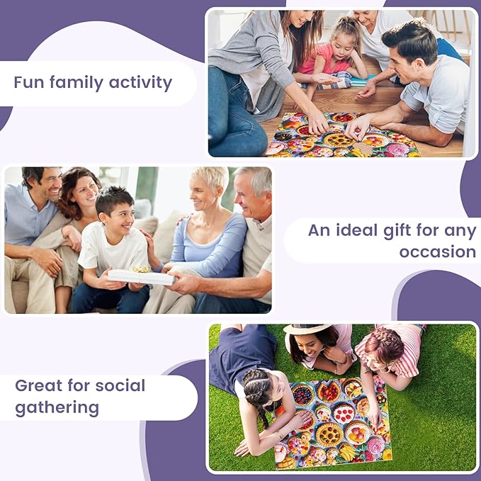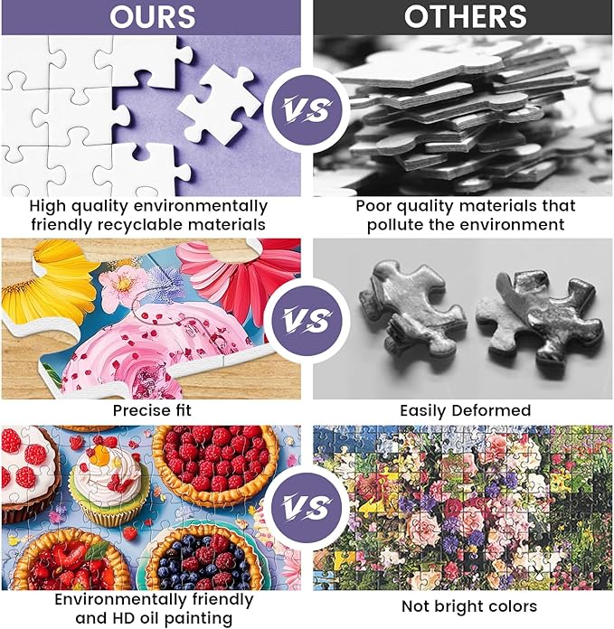 - Desserts Puzzle: This 300 piece puzzle features various desserts and fruits, bringing you a rich visual experience with its vivid imagery and bright colors! As you play the jigsaw puzzle, you'll feel as if you're immersed in a sweet gourmet feast, providing a wonderful way to relax and relieve stress
