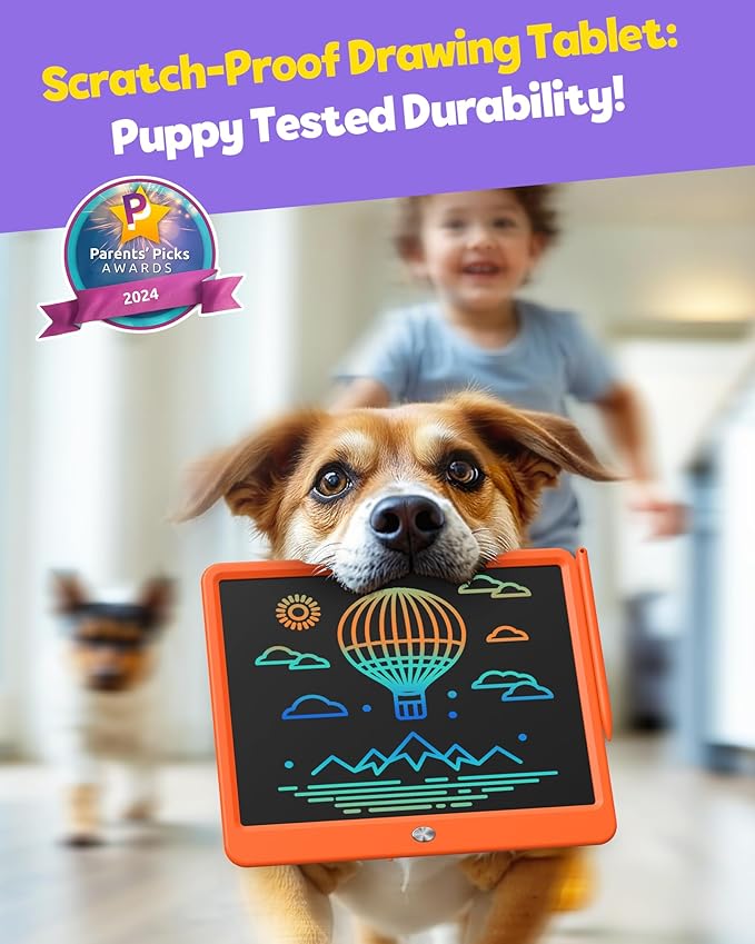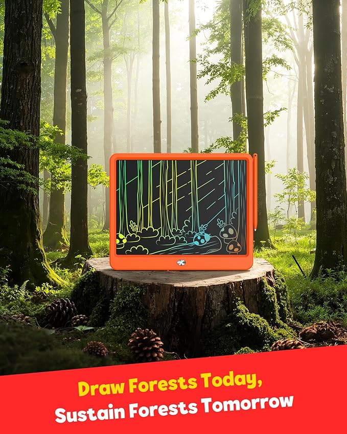 TEKFUN LCD Writing Tablet Doodle Board, 12inch Colorful Drawing Tablet Writing Pad, Kids Travel Essentials, Toddler Toys 5 6 7 8 Year Old Girls Boys (Orange)