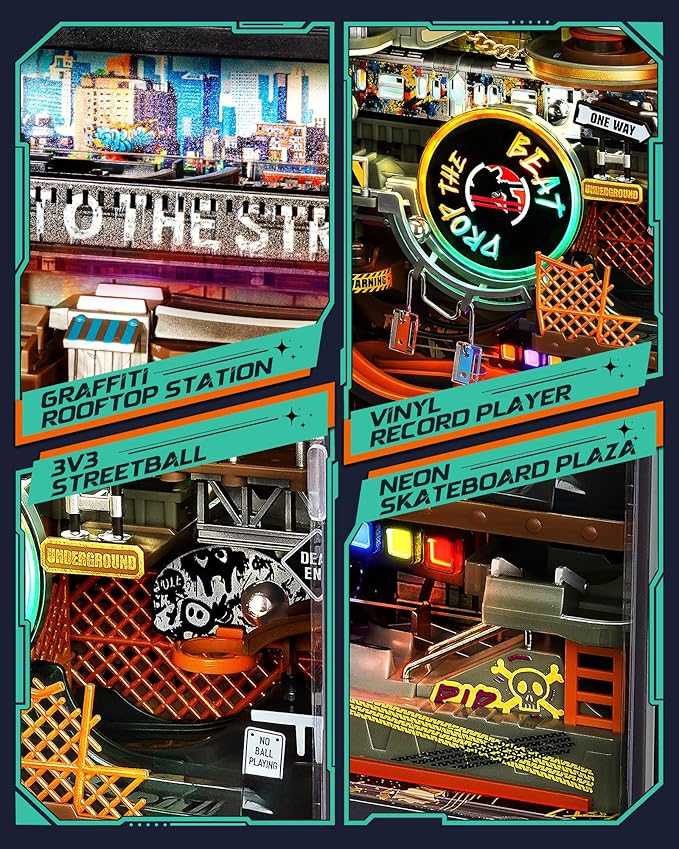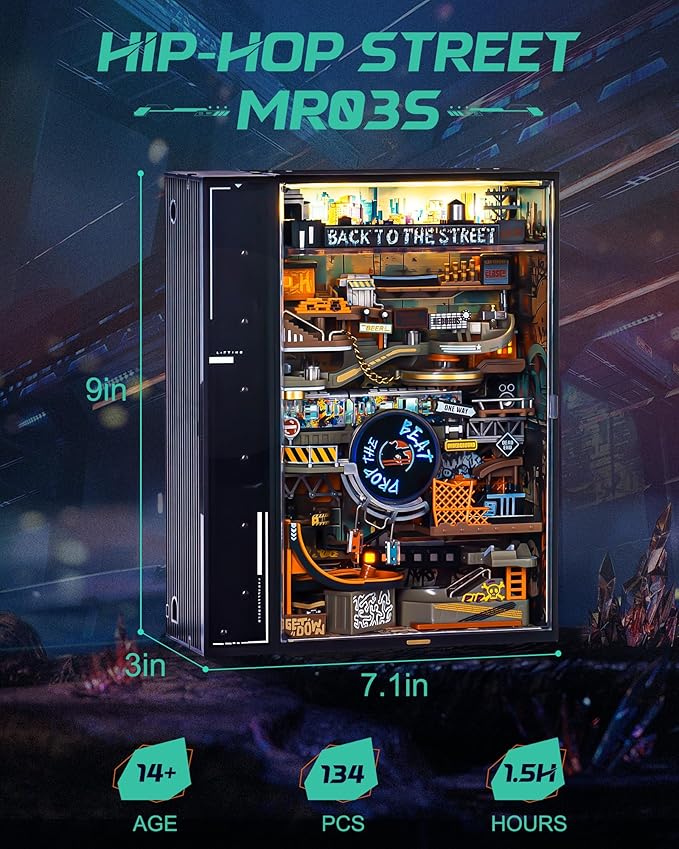 ROKR Marble Run Mechanical 3D Puzzles for Adults& Teens, DIY Miniature Model Building Kit, Parallel World Hip-Hop Street MR03S