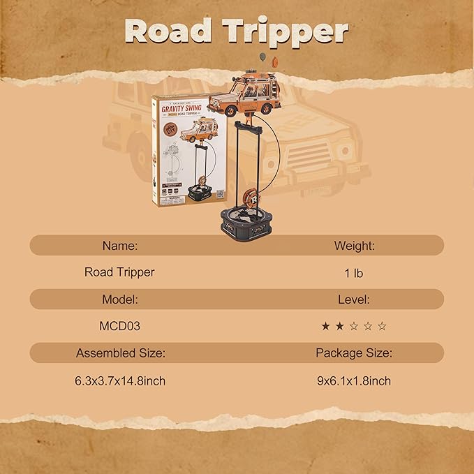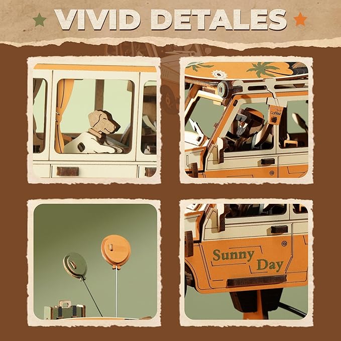 - 【ROKR Road Tripper】The MCD03 is an exquisite 3D wooden puzzle that stands out with its unique road trip theme and retro-inspired design. Meticulously crafted details capture the fun and adventurous spirit of travel, resulting in a charming three-dimensional display. This ROKR puzzle is a visually striking piece that adds distinctive character and a lively touch to any space.