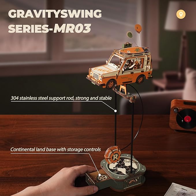- 【ROKR Gravity Swing】The gravity swing series is designed based on the principle of center of gravity balance of an object, and is mainly composed of a base, a bracket, a swing assembly, etc. Touch the tail swing lightly and it will swing instantly.This center-of-gravity pendulum toy creates a smooth, swinging motion without the need for motors and batteries. It's engineering, imagination, and just the right amount of absurdity to kickstart conversations and make physics feel like play, all in one tiny desk display.