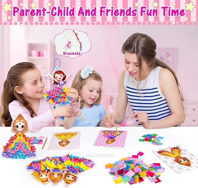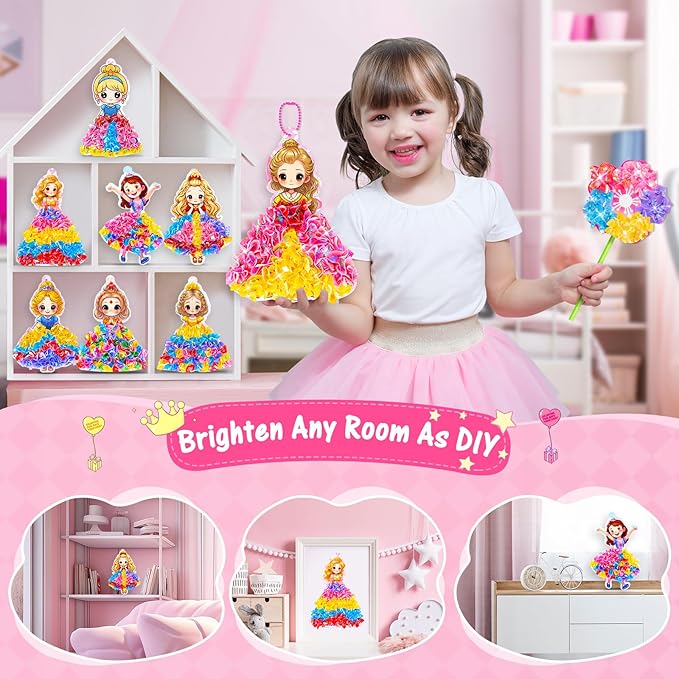 - ใ๐๐๐จ๐ฎ ๐ฟ๐๐ ๐๐ค๐ง ๐๐๐ฉ๐ฉ๐ก๐ ๐๐๐ฃ๐๐จใArts and crafting with this kit is a breezeโeven for first-timers! Kids start by picking their favorite princess or flower template. Next, they slide the foam pad under the template and use the included tools to โpokeโ the colorful fabric squares onto the design (no tricky skills needed!). Finally, add a chain to hang their princess or use the glue to attach the bracket to the back. Beyond being fun, this process helps boost focus as kids get lost in their art. Pro tip: Let the glue dry fully for a strong, long-lasting hold!
