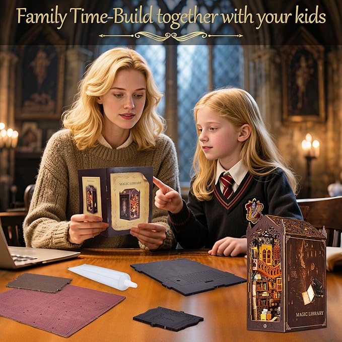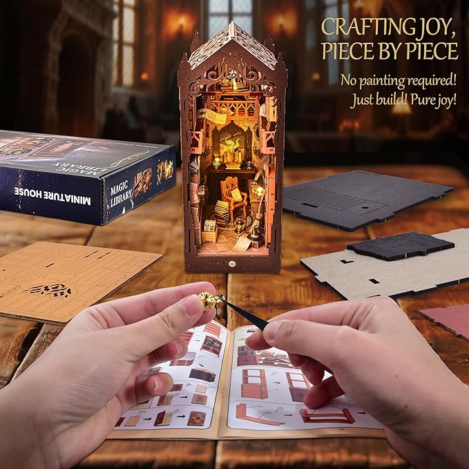 Book Nook Kit for Adult DIY Booknook Dollhouse Miniatures Bookshelf Insert Library Decor 3D Wooden Puzzle