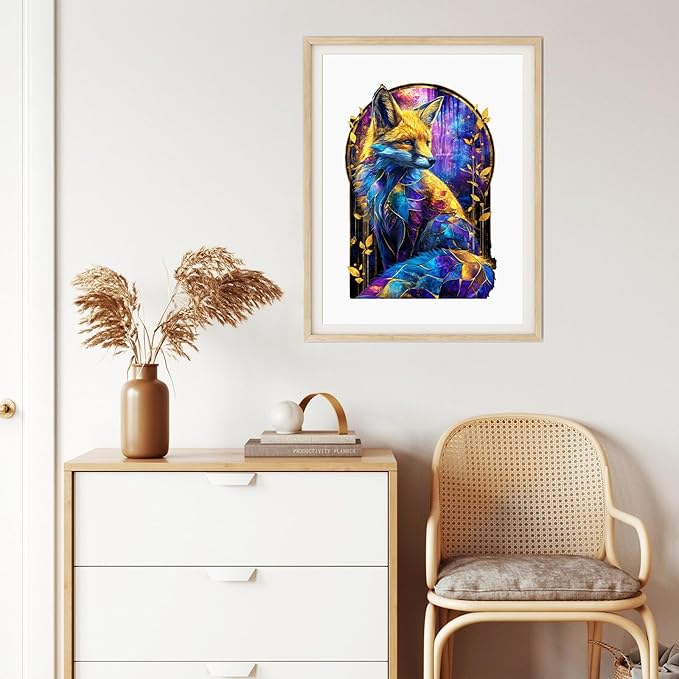 Wooden Puzzles for Adults, Luminous Fox Jigsaw Puzzle 300pcs, 9x12.9in, Unique Shape Wood Puzzles Adult, Creative Gift for Kids Family Game