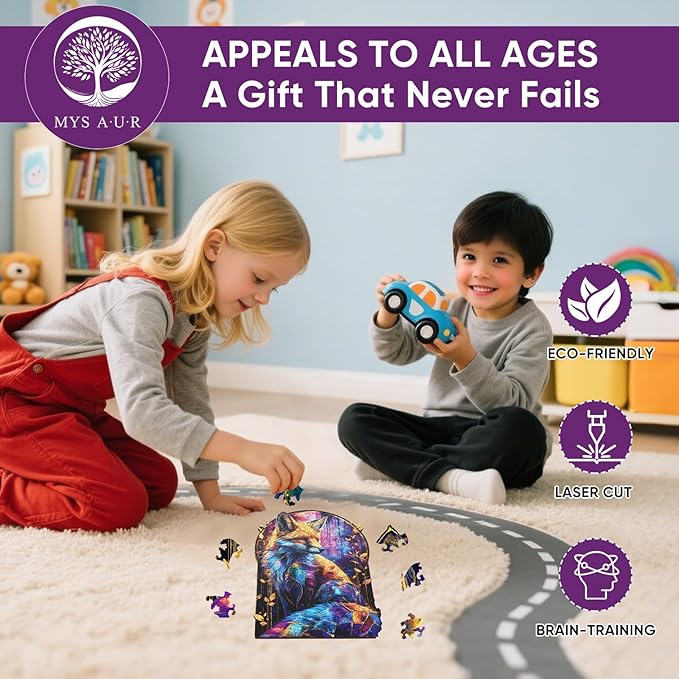 - 【Wooden Puzzle】The Luminous Fox wooden puzzle dazzles with every piece cut into a distinct shape—no two are alike! Perfect as a wooden puzzle for adults and teens, it promotes stress relief and creativity—ideal for solo or group bonding!