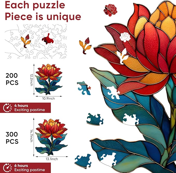 - 【Wooden Puzzle】The Glass Lotus wooden puzzle dazzles with every piece cut into a distinct shape—no two are alike! Perfect as a wooden puzzle for adults and teens, it promotes stress relief and creativity—ideal for solo or group bonding!