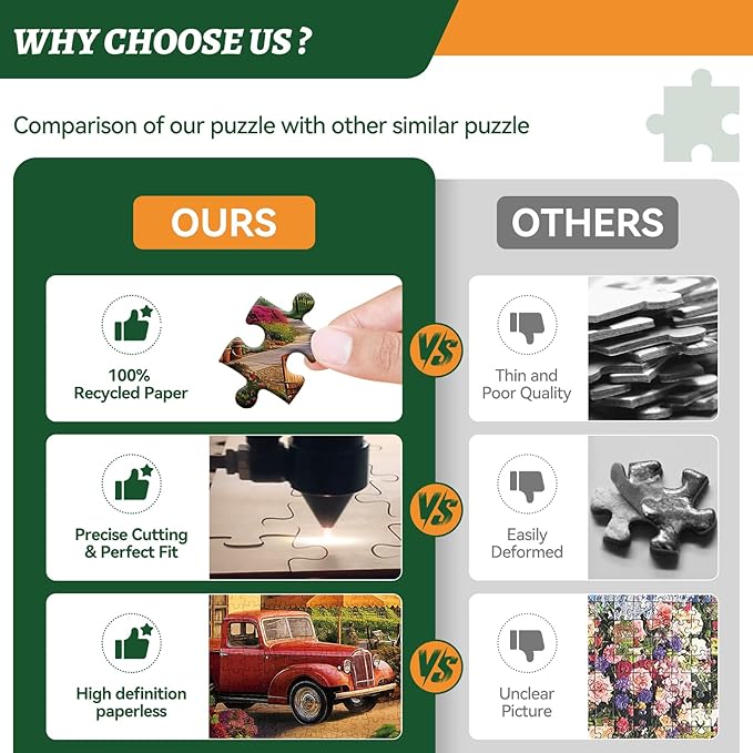 - Missing Piece Support: We understand the frustration of a missing piece. If your jigsaw puzzle arrives incomplete, we offer prompt missing piece support—just contact us and we’ll make it right. Enjoy worry-free puzzling with our quality puzzles for adults.