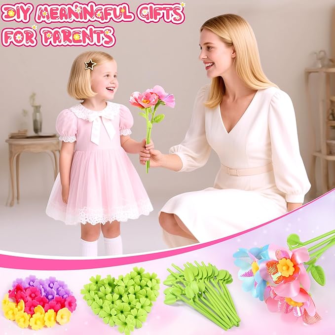 - 👧💖FABRIC FLOWER BOUQUETS TOYS GIRL TOYS - Beyond the fun of crafting itself, the toddler arts and crafts kit also turns kids’ creations into heartfelt handmade gifts: they can wrap their finished flower bouquets with the included Bouquet Wrapping Paper, tie them neatly with the matching Ribbon, and pair them with the provided Thank You Card to give to parents, grandparents, or friends. It’s a fantastic activity for family bonding, kids’ birthday parties, or solo relaxation—turn free time into a rewarding project, and watch as plain materials transform into charming floral art that you’ll be proud to display.