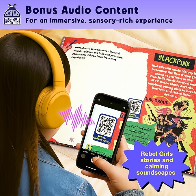- IMMERSIVE WRITING EXPERIENCE! Set the perfect vibe for writing with accompanying audio. This journal for girls includes scannable QR codes that take girls to Rebel Girl content that corresponds to the journal stories and prompts. Girls can listen to inspiring audio stories and calming soundscapes while they write, helping them relax, focus, and get into their creative flow. It’s a full sensory experience that makes journaling with this kit even more layered and special!