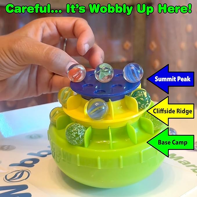 - 3 LEVELS OF CHALLENGE AND 40 MARBLES INCLUDED: Roll the die to choose Base Camp (easy), Cliffside Ridge (medium), or Summit Peak (hard). Higher levels = more wobble = more excitement!
