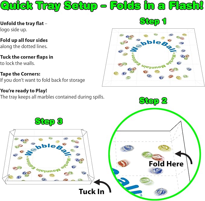 - FOLDABLE MARBLE MAT FOR FAST CLEANUP: Includes a foldable play mat + built-in storage. Keeps marbles contained, clean-up fast, and everything in one place. All 40 marbles store inside the wobbling base—no missing marbles! Durable, portable design is built to last.
