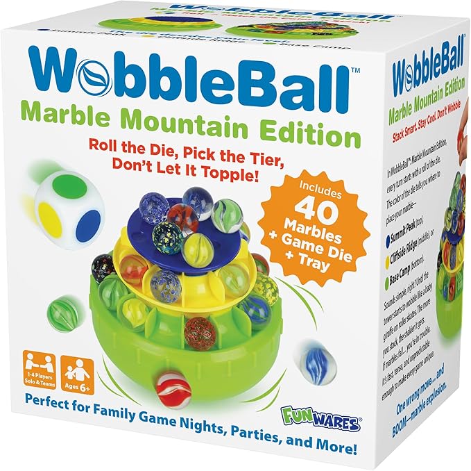 Funwares WobbleBall 3-Tier Marble Balance Game, 40 Marbles Included, Skill & Dexterity Games for Kids & Adults, Family Party Game for 1-4 Players, Ages 6+