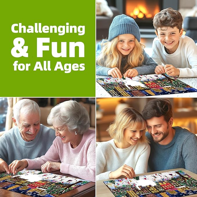 - โจ Magical Winter Skating Scene: Immerse yourself in a stunning jigsaw puzzles 1000 pieces artwork featuring a festive urban ice rink, glowing windows, and snow-dusted trees. This puzzle for adults delivers a captivating and festive challenge for enthusiasts and beginners alike.
